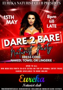 Tickets for Dare 2 Bare are available exclusively at www.eurekanaturistclub.co.uk. Due to limited availability, we encourage you to book early to guarantee your spot at this extraordinary event.